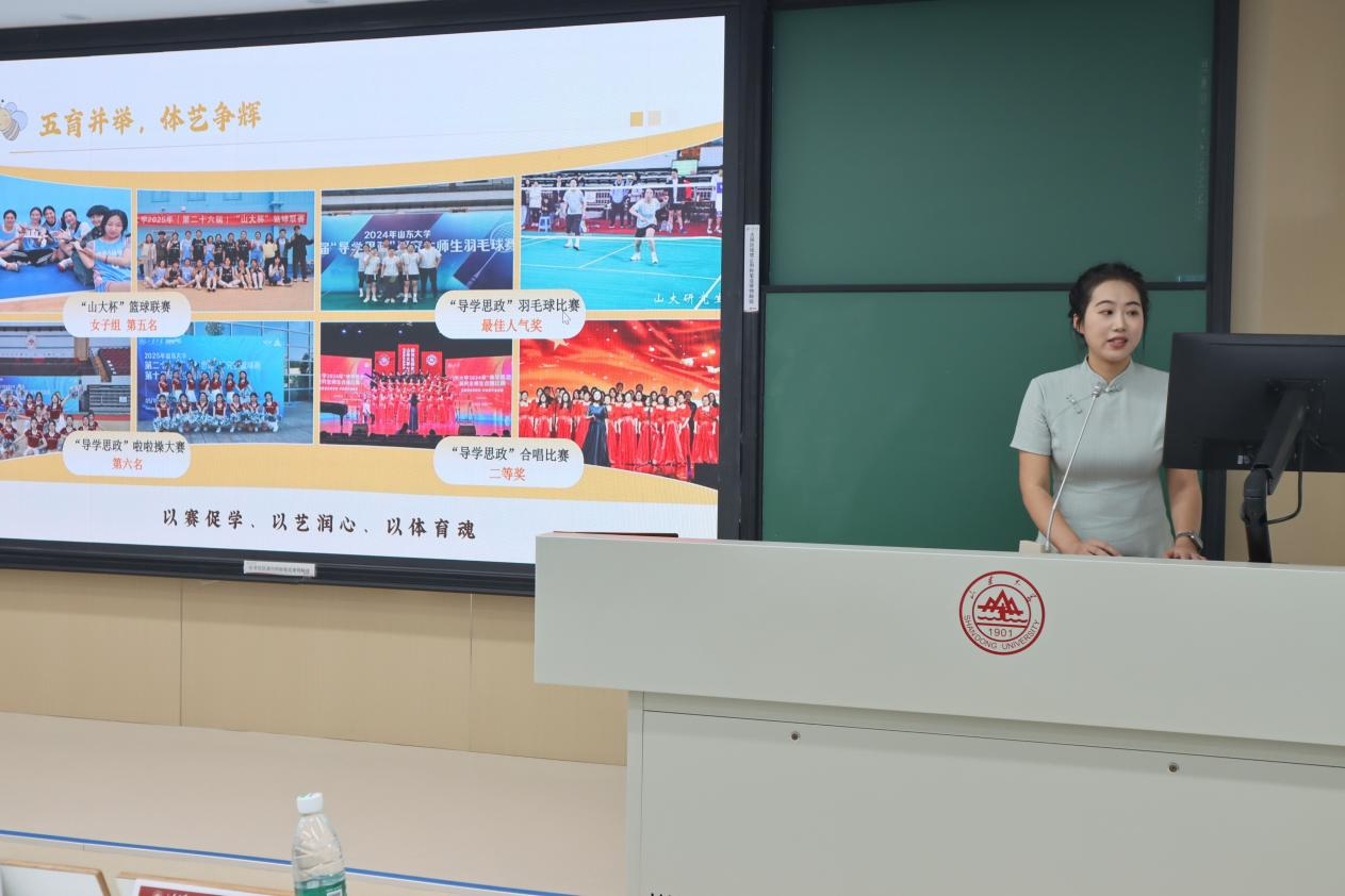 2025级辅导员刘畅介绍了学院管理团队及信息获取渠道,重点讲解了宿舍安全、请销假制度等日常管理要点,并对新生入学教育系列安排作了说明,全方位助力新生适应研究生生活。