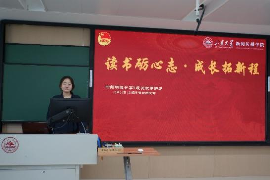 接着,2024级的张含思齐分享了她在大一积累的成长奋斗经验,全面介绍了绩点、综测等知识,并倡导同学们平衡“自由”与“自律”,少走弯路、尽快找到方向。以个人成长故事为同学们破雾指航,提供有益经验,并与同学们发起互动问答,在研讨中碰撞思维火花。