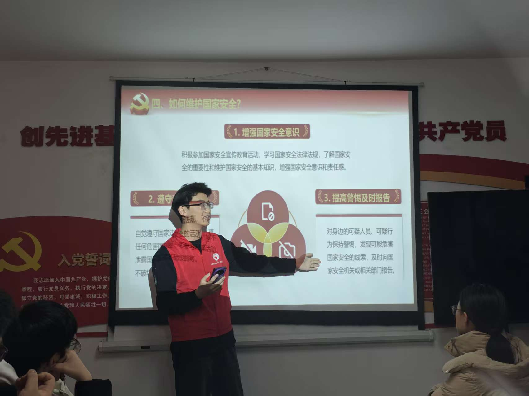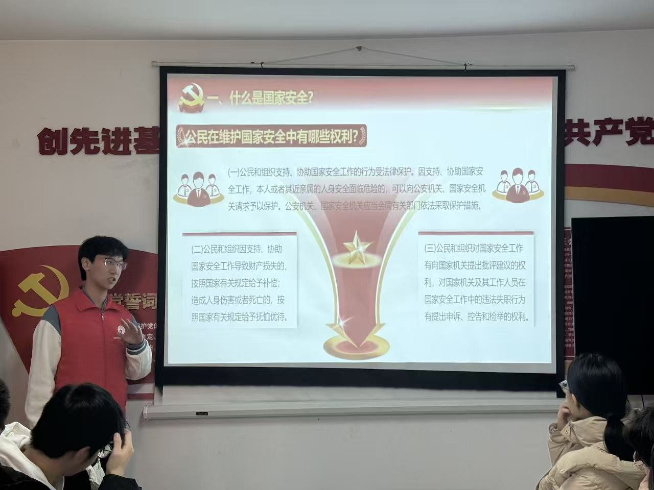 活动现场,宣讲团成员依次上台,围绕“什么是国家安全、公民的权利和义务、哪些行为危害国家安全、如何维护国家安全”四个主题层层递进,进行系统讲解。宣讲团立足总体国家安全观,解读国家安全法与全民国家安全教育日的重要意义,全面介绍政治、国土、军事、经济、网络、生物等十六大安全领域,清晰阐释公民在维护国家安全中的法定权利与义务,让同学们全面理解国家安全的丰富内涵与法治要求。