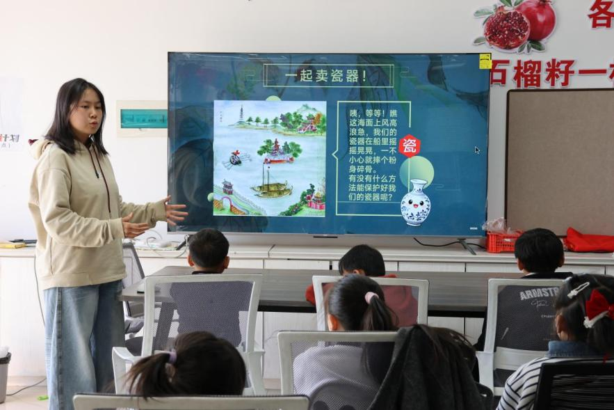 刘家歆同学化身“探险队长”,带领孩子们踏上了一场别开生面的“瓷器历险记”。她从一捧泥土讲起,娓娓道来瓷器如何历经烈火锻造,最终成为中华文化的瑰宝。通过了解不同朝代瓷器的造型与纹饰对比、运输方式的发展演变,孩子们仿佛穿越千年,触摸到了青花的素雅、粉彩的绚丽,在心中悄然播下了热爱传统文化的种子。