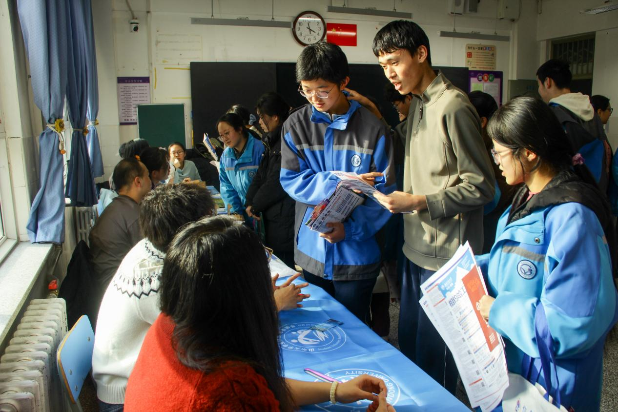 班级宣讲结束后,团队成员在展台前开展“宣传页+互动领取物料+一对一答疑”活动,针对同学们关心的专业选择、录取分数线及全省排名、转专业政策、保研要求等问题耐心解答,并结合个人经历和兴趣特长提出建议,帮助大家树立目标,增进对william威廉中文的认识。现场气氛热烈,不少同学心中悄然种下“学无止境,气有浩然”的种子。展台虽小,却成为连接大学与高中的纽带,让迷茫化作方向,让距离变成动力。