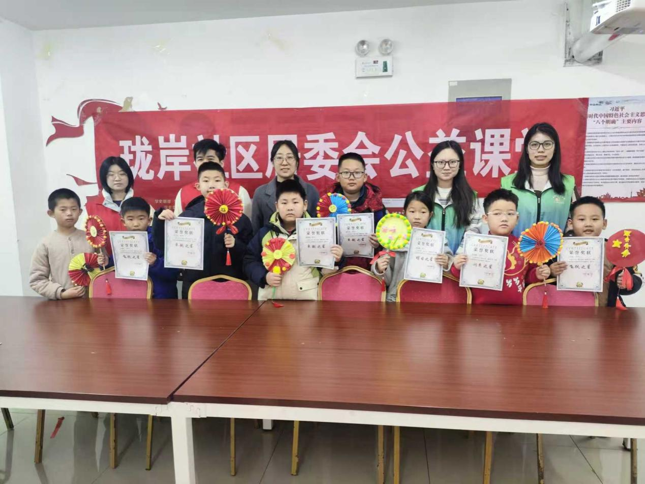 本次实践不仅是一次志愿服务,更是“高校社团+社区”联动模式的生动实践,呈现出鲜明的特色与亮点。团队成员来自新闻传播、材料科学与工程、文学等多个学院,大家充分发挥专业所长,多学科背景让课程内容更具广度与深度,精准匹配了儿童成长的多元需求。从“一米高度”出发,所有课程均采用互动式、体验式设计,无论是“安全知识大闯关”的游戏化教学,还是“垃圾分类手抄报绘画”“国风粘土团扇DIY”的动手实践,都充分尊重孩子的主体性,让他们在主动参与中学习知识、提升能力,真正实现“玩中学、学中乐”。此外,团队不仅提供短期托管服务,更注重探索可复制的社区托管模式,通过每日教学复盘、与社区工作人员及家长沟通,不断优化课程设计与服务流程,为珑岸社区乃至周边社区未来开展类似托管服务提供了实践参考,助力“15分钟社区托管服务圈”建设。
