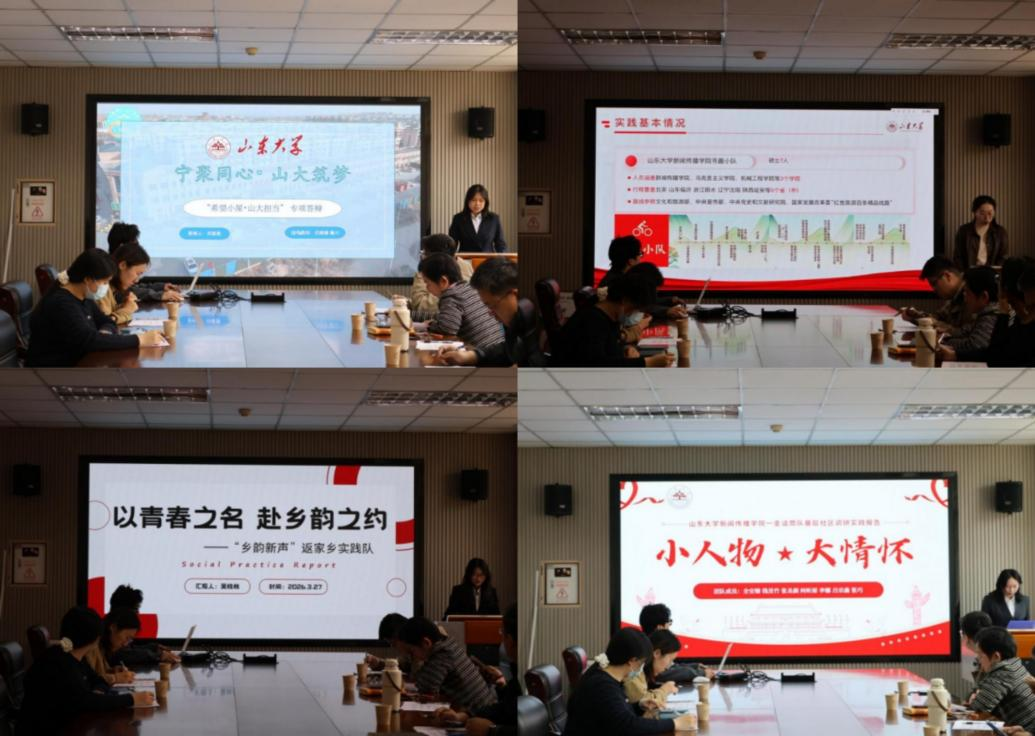 全院共9支实践团队参与社会实践优秀团队答辩,依次展示了丰富多彩的实践历程与丰硕成果。各实践团队围绕文化传承、乡村支教、基层服务、红色文旅、社区治理等多元主题,深入基层一线,扎实深入开展社会调研与服务,形成了多项具有现实意义与应用价值的社会实践成果,充分展现出新传学子扎根社会、学以致用的青春风貌。评委老师针对实践内容进行细致点评,为后续优化提升指明方向。