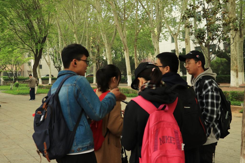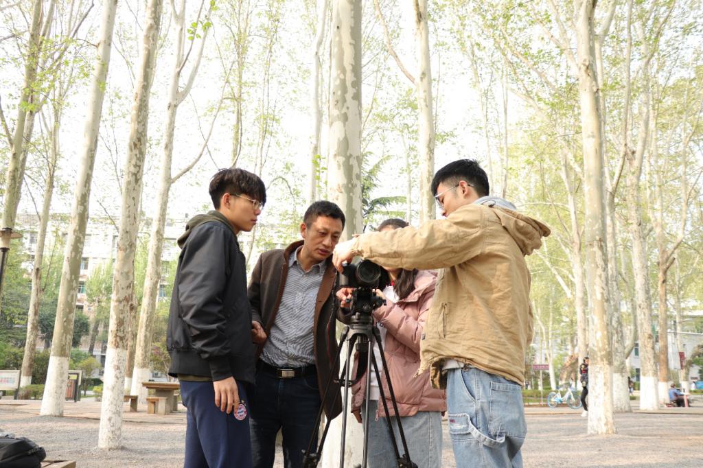 协会邀请到山东电视台教师徐迎春指导此次实践。大家将拍摄地点选在光线较好的小树林,由参与同学充当模特,分组拍摄。结束摄像后将自己的录像片段拷贝下来进行剪辑。同学们在摄像时不断观察不同角度与光线配合下镜头的人像呈像效果,并通过不同的色温摄制去表达情绪。