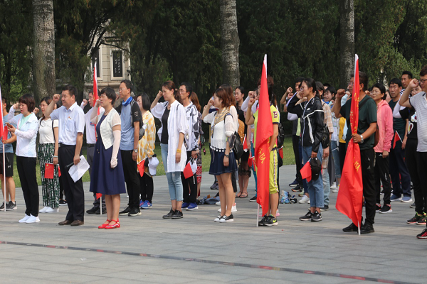 实践小组参观探访华东烈士陵园时,恰逢山东师范大学附属小学的老师们前来向烈士纪念碑进献花圈及宣誓。小组成员用记录下了这珍贵的画面。