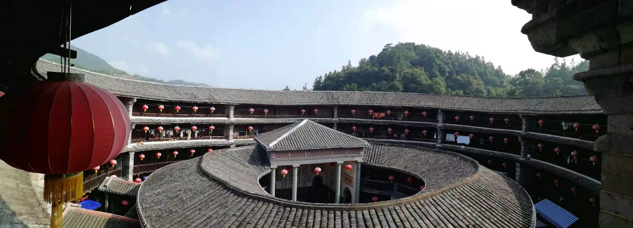 振成楼俗称八卦楼,以富丽堂皇、内部空间设计精致多变而著称,堪称中西合璧的生土民居建筑的杰作。参观振成楼的过程中,实践团对景区工作人员进行了简单采访。工作人员向调研团队介绍了土楼的数量、种类、分布以及有关土楼的趣事,在交谈中,队员们了解到了景区的日常工作、土楼的保护维修状况等,体会到了永定土楼景区对客家文化的传承作用。