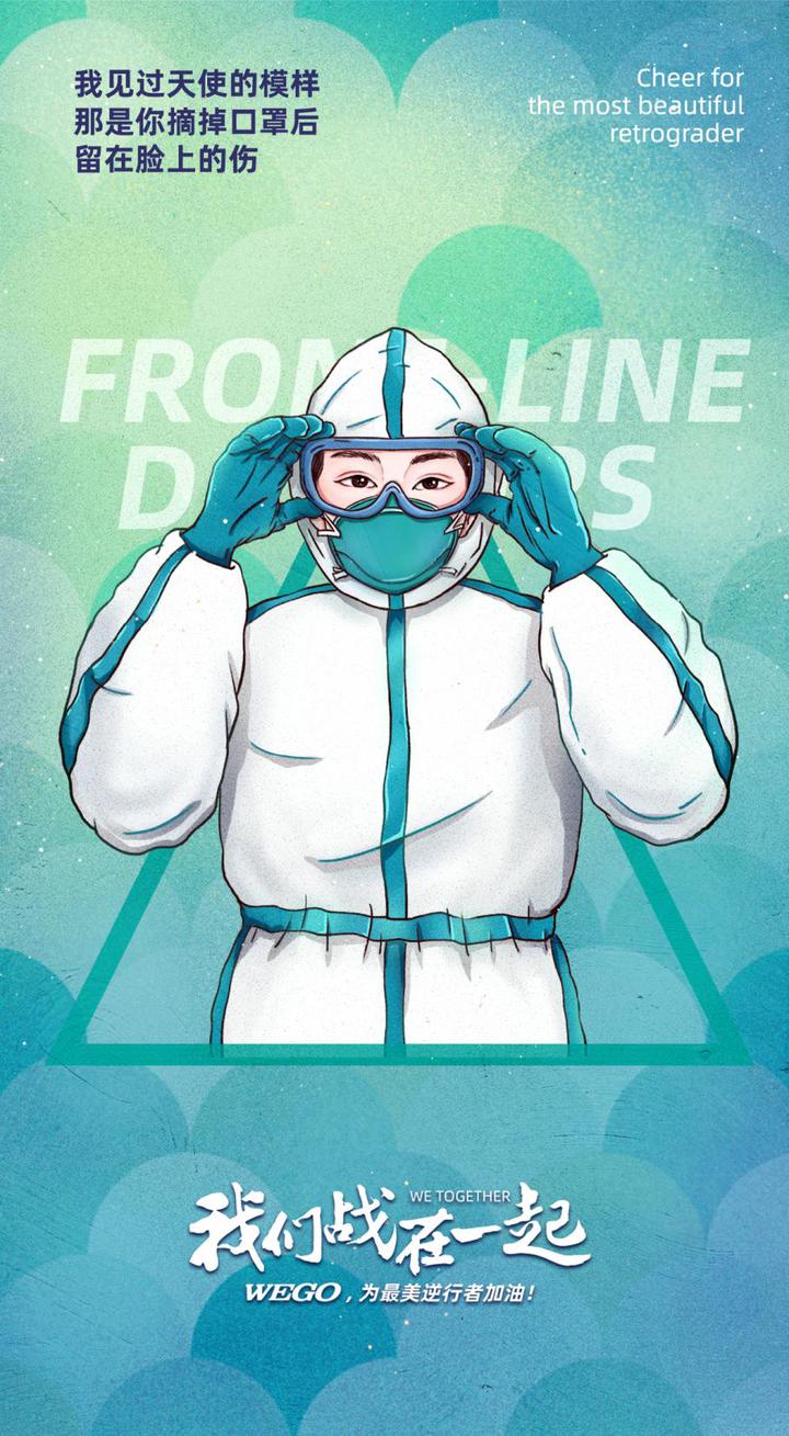 “WEGO,为最美逆行者加油!”公益传播计划第一阶段,面向山东省内各高校学生招募学生志愿者,以笔为旗,以文案的力量,为奋斗在抗疫一线的医护人员以及抗击疫情坚守岗位默默奉献的人们加油。笔底风云千钧力,亦可慰藉疲惫的灵魂重新站起。