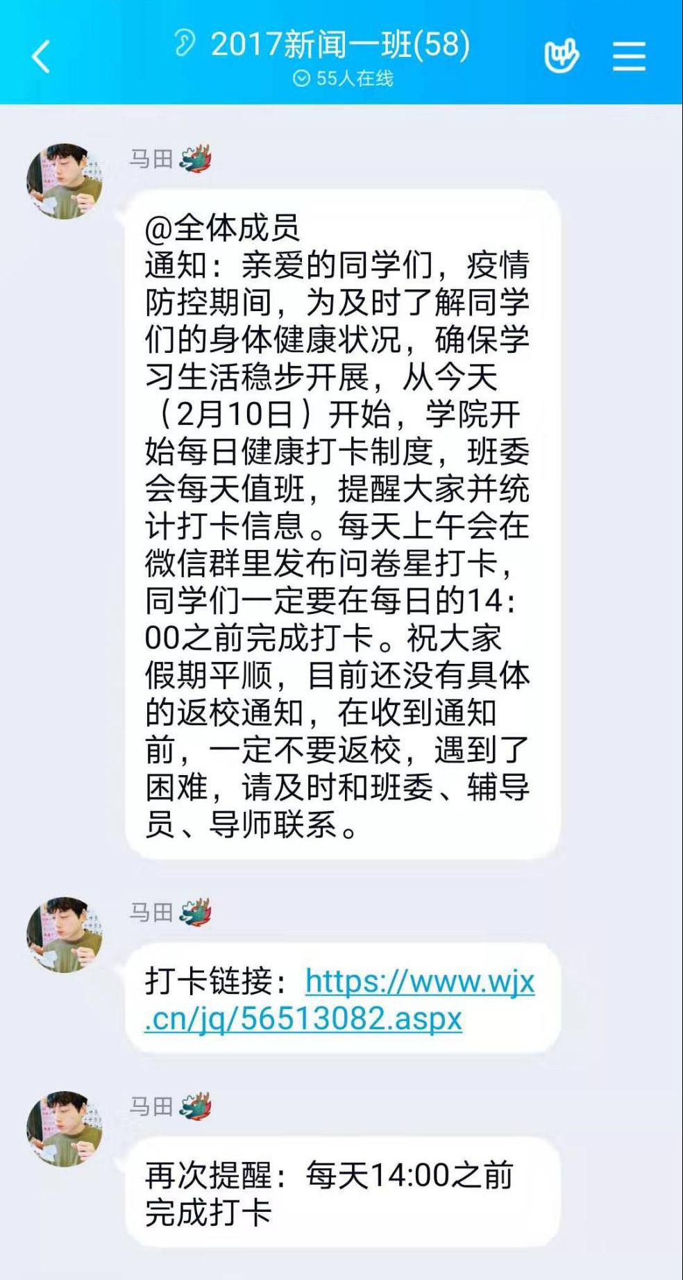 出台疫情防控期间学生工作制度,启动全员健康打卡活动