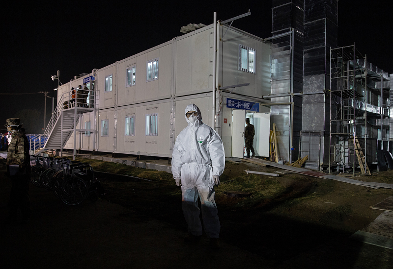 图片说明:这是杨海记者在火神山医院采访时的照片