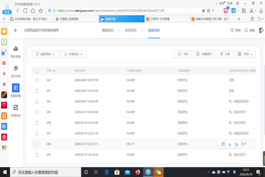 二十点十五分,组长宋书扉同学主持会议进行,对前期问卷发放以及数据分析进行总结。