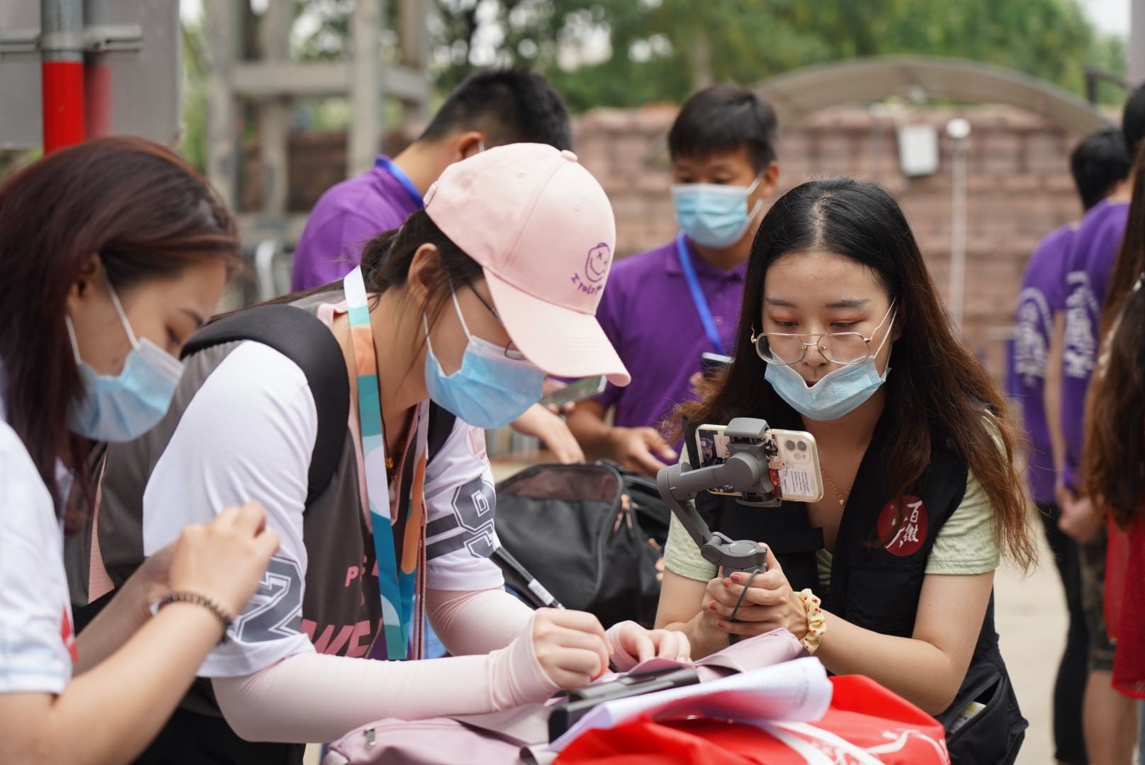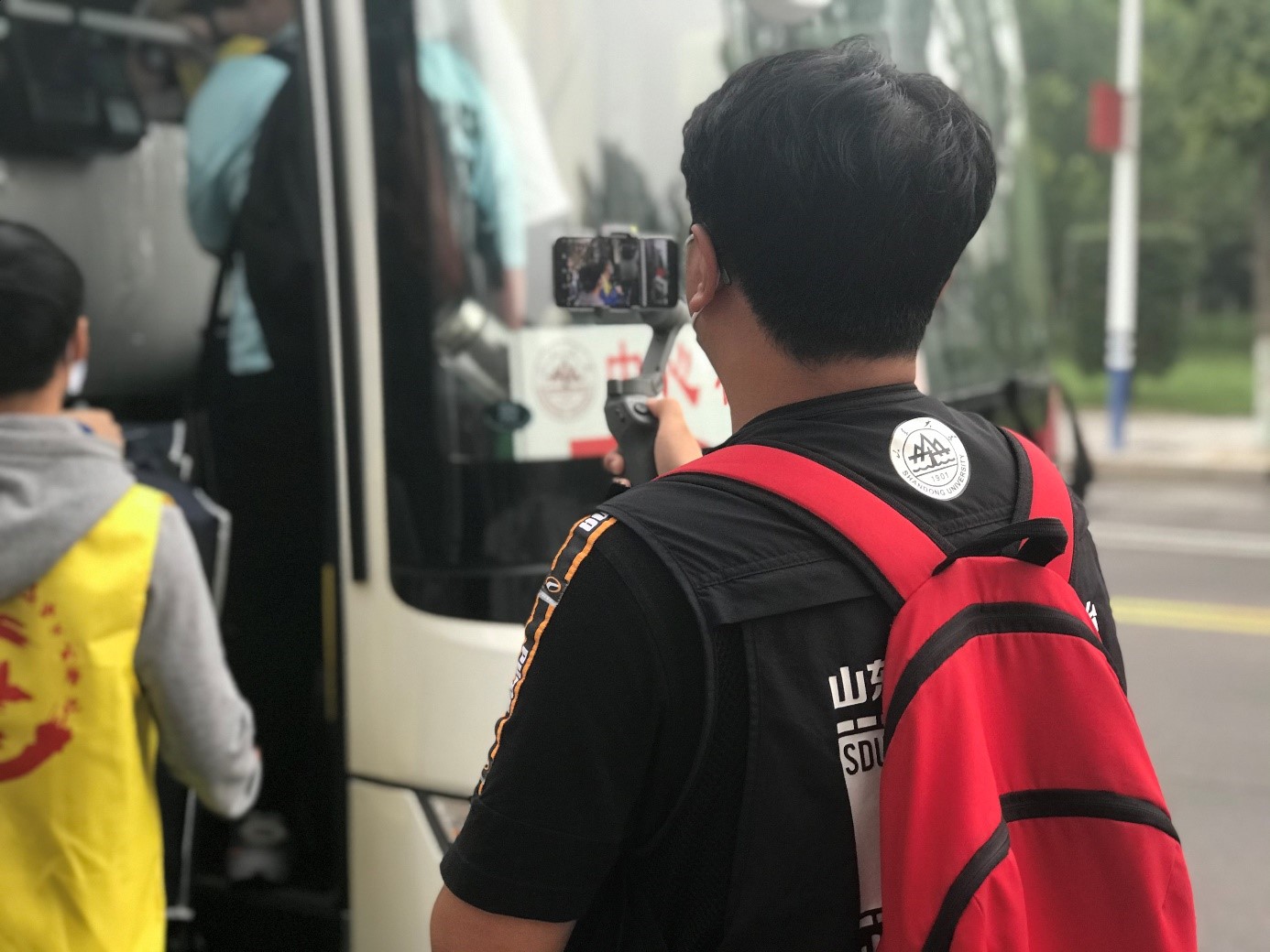 9月12号上午7点左右,九名影协成员分成四组,分别到达william威廉中文中心校区、洪家楼校区、兴隆山校区和软件园校区,进行迎新现场视频拍摄。各校区迎新现场人来人往,报到展台处忙中有序,医务人员为新生进行核酸检测……新生的到来让山大校园又热闹起来,影协成员们手持手机云台和口袋相机穿梭在校园中,记录迎新现场,捕捉各校区独特的迎新场景。