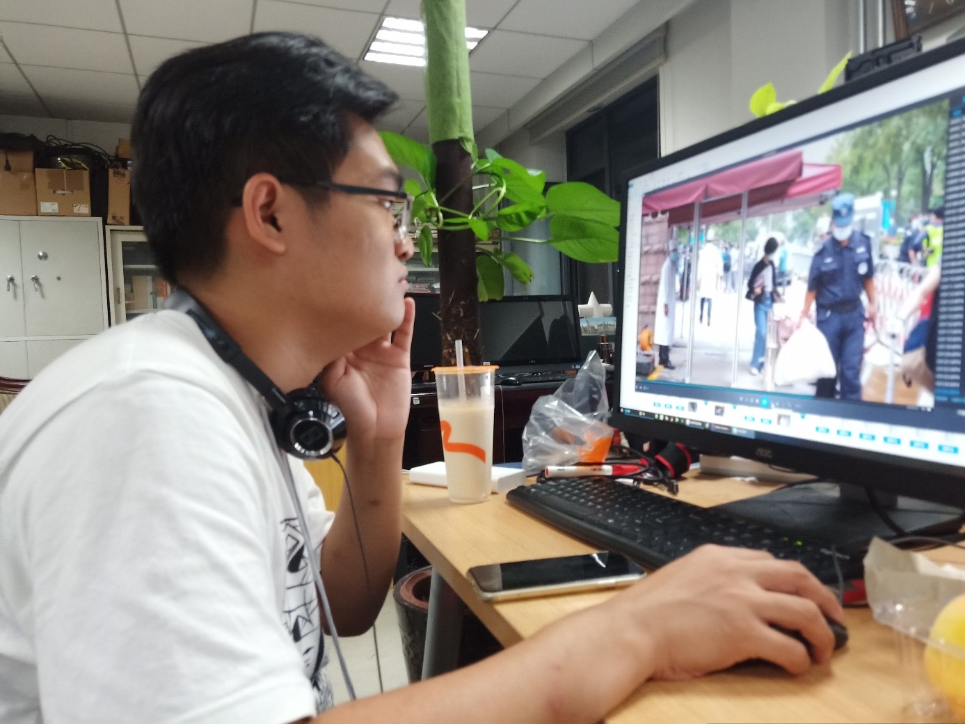 此次活动是一次全新的尝试。我们改变了拍摄设备:本次拍摄大部分采用手机拍摄,手持轻便的手机稳定器即可完成拍摄,大大降低了以往携带相机和三脚架的“沉重”负担。这让成员们在拍摄中更加灵活,实现迅速切换多场景拍摄,在运镜上也进行了大胆地尝试。而在后期剪辑方面,影协成员周世勋独立担任剪辑任务,与指导老师郭坦加班剪辑到13号凌晨三点,这才确保了13号当天该期视频的发布。