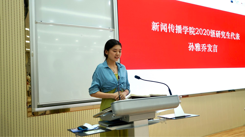 2020级研究生代表孙雅乔代表全体新生,表达了对未来研究生活的期待,要努力拼搏,成为最好的自己。