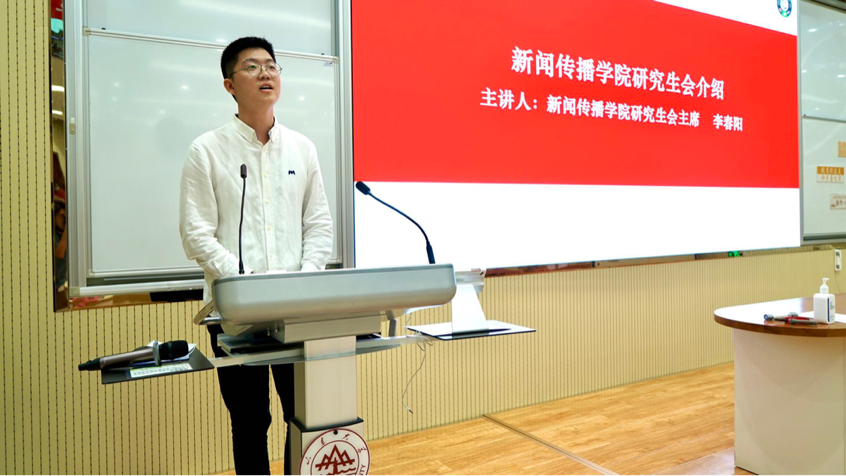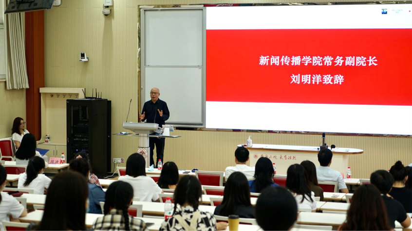 常务副院长刘明洋在致辞中阐述了对研究生教育和未来发展的想法。他表示,研究生首先要做好自己的角色定位,研究生是学科建设的中坚力量,在三年的研究生学习生活中,要努力对学科发展作出自己的贡献;其次,研究生要有开阔的视野,积极参加学术会议,要有国际化视野,接轨国际研究步伐;第三,研究生要确定好自己的研究方向,要有宏观视野,从国家战略层面出发,提升自己的研究层次。要与导师积极联系沟通,关注学院的重点研究方向,在马克思主义新闻史论研究、舆论治理、文化传播、国际传播、媒介科学研究等领域寻找适合自己的研究方向。