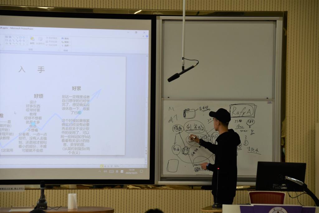 于闯同学主讲平面设计,简单明了地为大家介绍了关于设计的基础操作,并为大家介绍了许多“入门神器”,鼓励大家:多玩软件多思考,只要有想法,就尽管去做。