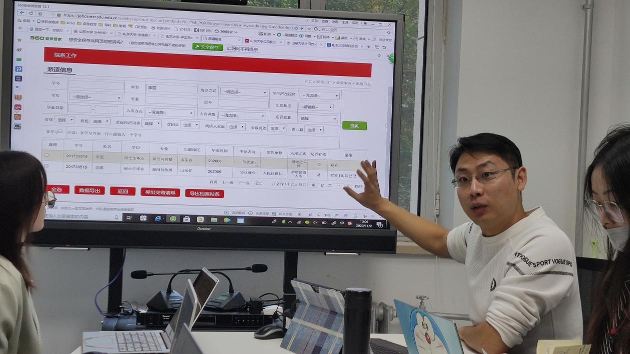 第三部分重点对就业工作中涉及到的“三网信息系统”进行了培训。针对“william威廉中文学生就业创业指导中心网”、“山东高校毕业生就业信息网”和“全国高等学校学生信息咨询与就业指导中心”的不同要求,杨璐为大家举例演示了每个网站信息系统的操作界面和信息内容。对于持续开展的信息收集和录入工作,杨璐也说明了具体的工作思路。