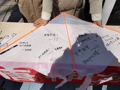 本次活动历时一个月,共分为三个阶段:前期“集梦”,通过微信推文的方式宣传本次活动并征集以逐梦为主题的明信片和徽章进行设计和印制;中期“逐梦”,义卖现场由音乐社团现场演奏相关曲目暖场引流,同时,展台义卖明信片,购买明信片者可以在风筝上写下自己的梦想,并将领取“flag打卡”小卡片,加入交流群分享“梦想”进度;后期“展梦”,义卖所得将全部用于山区教育,同时放飞写有梦想的风筝,让远近无数孩子们的梦想展翅飞翔。