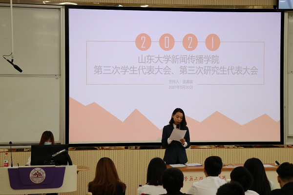 正式会议开始,学院党委副书记王丽君致开幕词,宣布大会开幕。她指出,我院积极推进学代会、研代会工作,是发扬新闻专业特色,积极传达学生需求,把“自我教育、自我管理、自我服务”落到实处,推动学院学生工作健康有效发展的重要体现。学院发展形势每年都有新变化,“一委三会”要发挥好自身作用,切实做好调研工作,征集有价值的提案意见,成为师生之间沟通的桥梁,助力学院发展进步。