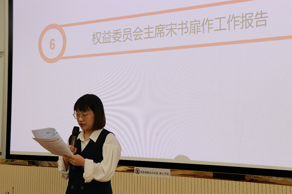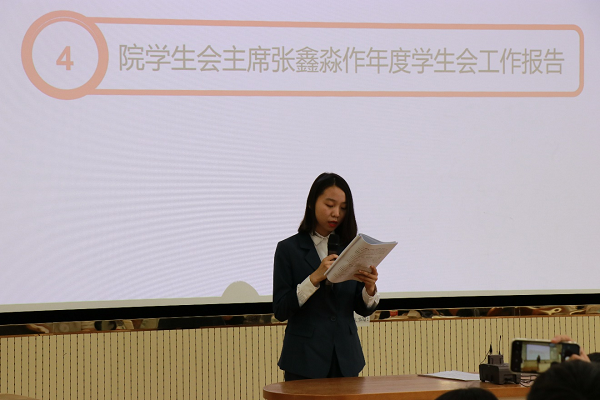 院权益委员会主席宋书扉作第三次学生代表大会、第三次研究生代表大会提案工作报告,就增加学院教学设施、完善本科生导师机制、增加创新团队专业性辅导、提供高质量实习机会等新旧提案进行了反馈,针对相关问题提出了相应的解决措施,并鼓励代表与同学们继续对学院发展提出意见建议。最后,大会审议通过新一届学生会主席团、研究生会主席团成员。