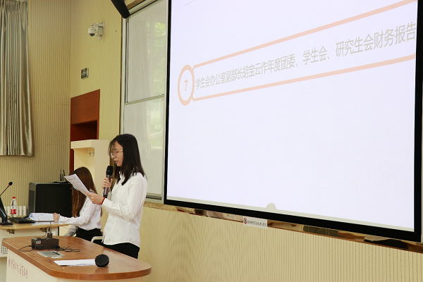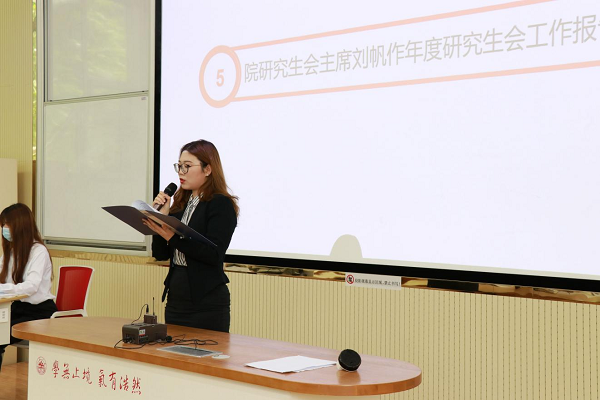 随后,威廉williamhill团委副书记王凤敏作年度团委工作报告,从学院团委组织架构“三位一体”、宣传工作“四大板块”、文体活动“四大系列”、社会服务“三大创新”、社团活动“架构+价值”等方面介绍了团委工作;院学生会主席张鑫淼作年度学生会工作报告,从思想引领、体制革新、活动创新、权益保障、宣传引领等方面汇报学生会工作,并就学生会进一步完善体系、提高效能路径进行了展望;院研究生会主席刘帆作年度研究生会工作报告,介绍了研究生会在组织改革、党史学习、科研创新、校地合作、文体活动等方面献礼建党百年、建校百廿的工作历程,针对既有问题提出健全评价体系、创新工作机制等工作规划;院权益委员会主席宋书扉作权益委员会工作报告,总结了权益委员会在活动组织、细则评定、奖助学金评定等方面的工作,并将在新学年继续促进师生沟通、完善权益保障体系;院学生会办公室副部长胡宝云作年度团委、学生会、研究生会财务报告,公开“一委两会”收支情况并提请各位代表审议。