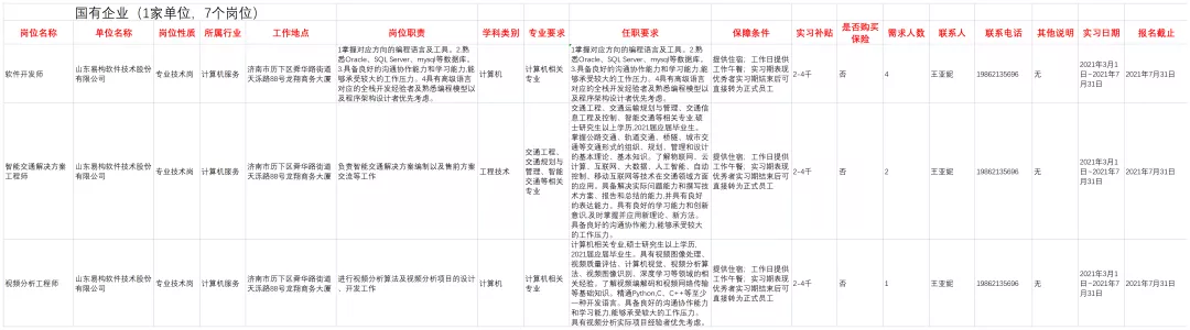 近期团队通过走访调研以及数据资料查询,整理总结出部分济南市历下区的实习就业岗位。以下实习就业岗位包含国企岗位、机关岗位、私营企业岗位、金融类岗位和其他岗位五大类别,方便受众快速查找目标职位。