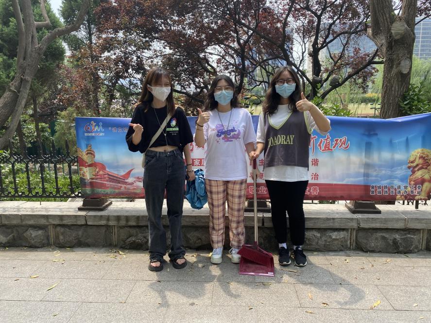 7月27日,“泉心泉意”新时代生态文明调研小队在泉城广场担任志愿者,帮助维护广场内环境卫生,沿河清理各处垃圾并协助进行垃圾回收。