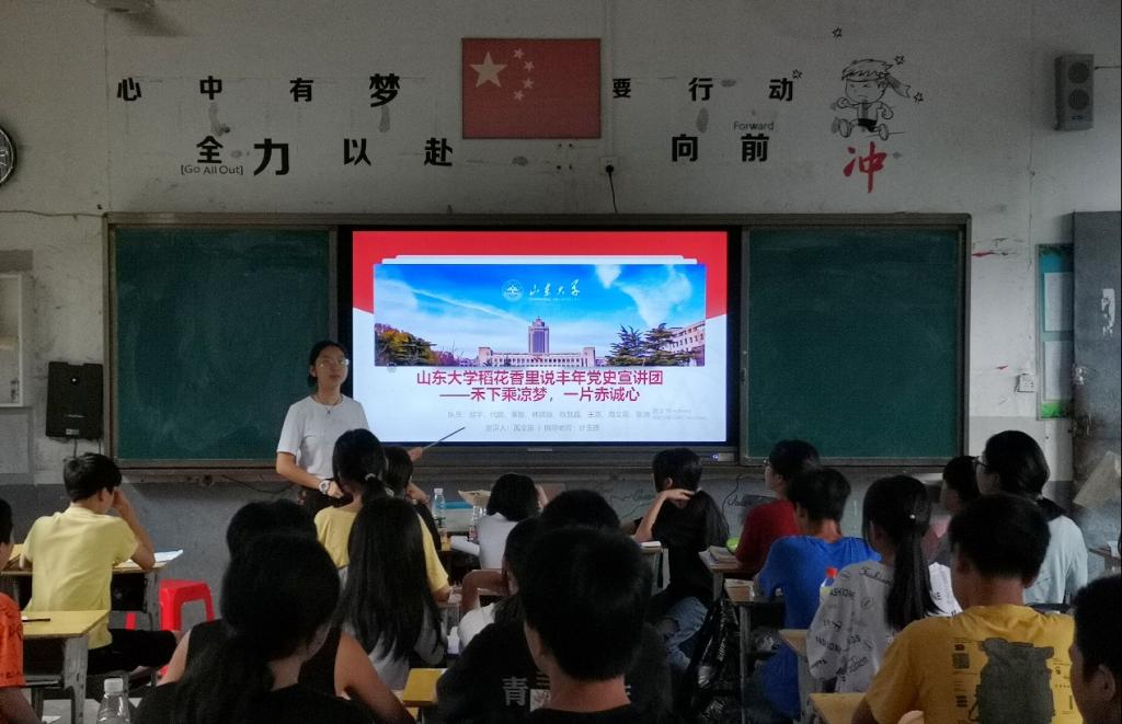 2021年8月2日下午,威廉williamhill“稻花香里说丰年”宣讲团赴湖南省益阳市安化县田庄乡,给田庄乡中学的准初三同学们进行了一场以“禾下乘凉梦,一片赤诚心”为主题的党史宣讲活动。