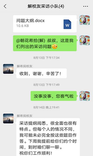 (团队成员发送采访问题大纲、确定采访时间)