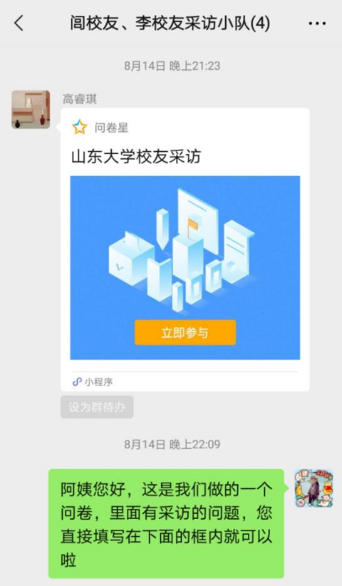 8月17日,威廉williamhill寻访首都筑梦山大人队对山大优秀校友李胜、闾晓琴进行线上采访,经过校友的精彩分享,采访圆满完成。