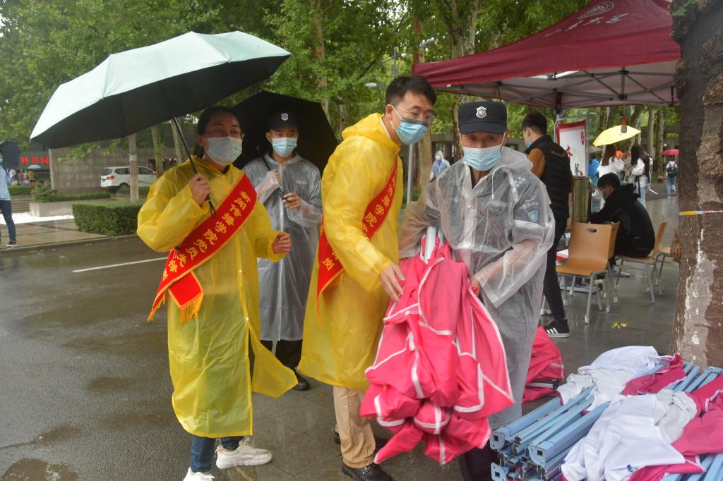 (共青团志愿者帮新生安置行李)