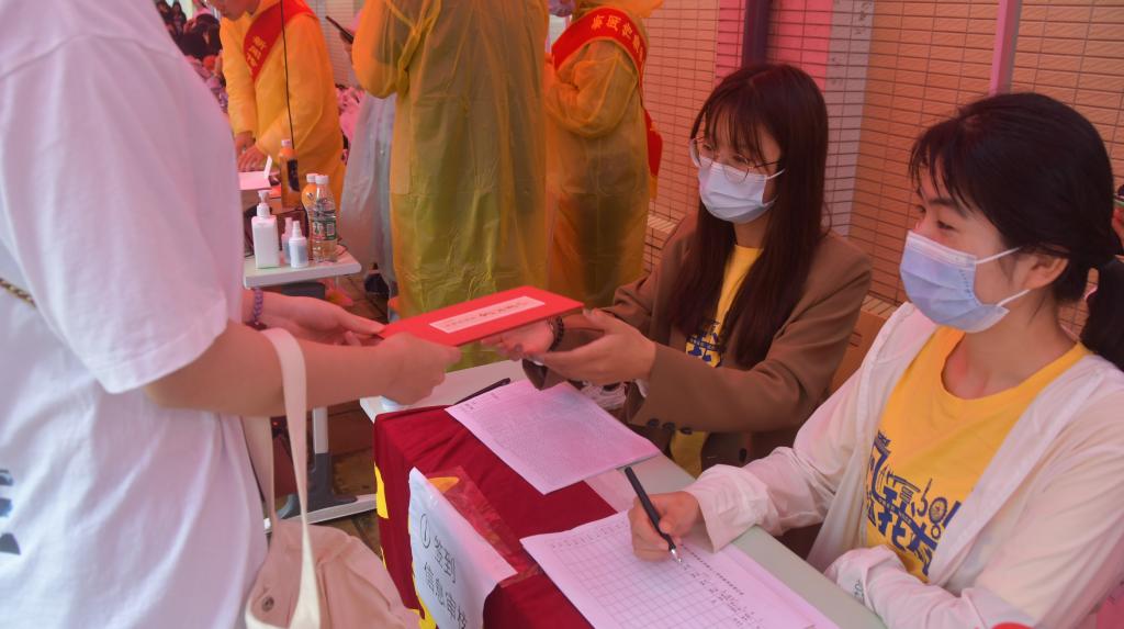 (学生会工作人员进行签到工作)