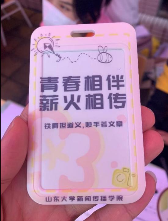 迎新现场还为新生们准备了抽奖活动,每一份赠送给新生的小礼品,都传达了学院对于新生的美好祝愿。2021级新生刘阳海博为迎新工作人员以及与他尚未谋面的新同学们准备了笑脸徽章,作为初见的问候。一枚小小的徽章在新闻传播大家庭里形成一股暖流,让本是陌生的一群人渐渐相互熟悉起来。