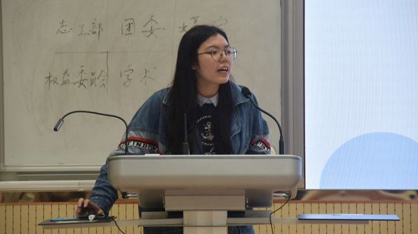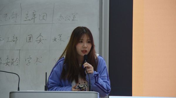 学生会执行主席董雅就如何平衡工作与学习这一问题提出了建议,并多次强调学习的重要性。在提及工作与生活时,她提出学生会的活动不仅可以丰富校园生活,同时也可以使新成员收获更好的自己。