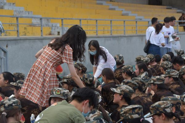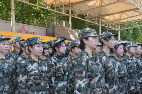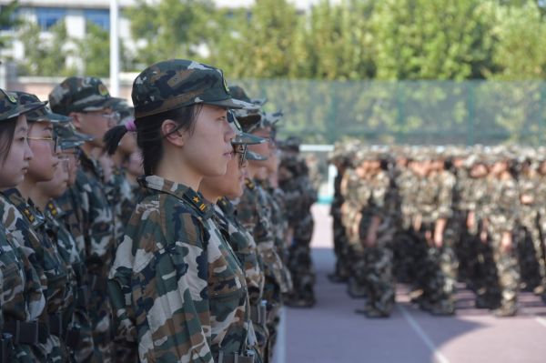 9月9日,同学们身着迷彩服在操场集合。军训团副政委朱伟、李玉蓉,军训团副参谋长胡安全,参训各学院党委副书记出席一营、二营、三营动员大会。庄严的国歌声飘扬在会场上空,各营长及学生代表发言。会后,同学们迅速投入了为期21天的军事训练任务。