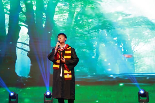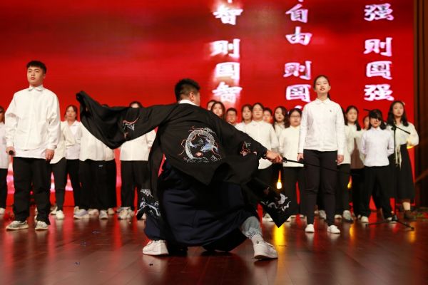 本场晚会展现的影视选段配音节目令人震撼,《冰雪奇缘》选段富有童趣、温暖人心,《甄嬛传》选段中的明争暗斗表现得淋漓尽致,而在对《觉醒年代》选段的演绎中,同学们仿佛穿过那段幽暗的岁月,重现百年前革命先辈的铮铮誓言,启示我们:不忘初心,方得始终。
