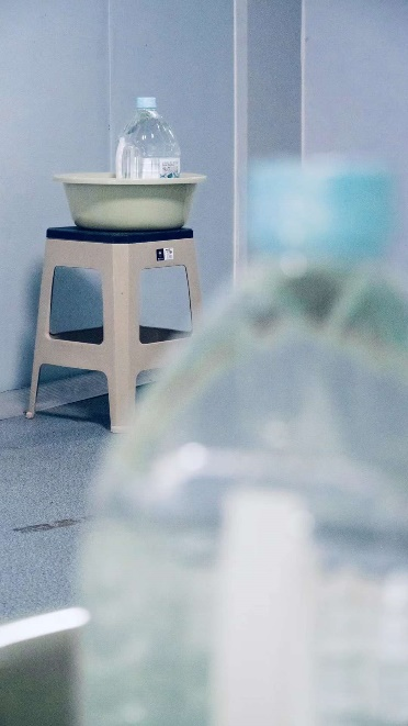 在方舱,一位位工作管理人员身着防护服,为我院师生提供基本的生活保障。化身修理工,他们修补窗纱、改换水管,他们爬楼登顶、搭建网络,尽力提供舒适稳定的环境;化身送货员,他们送饭、送水、送奶、送药、送水果,满足学生们的各种细小需求。一次又一次,师生们目睹并感受着工作管理人员的温暖,心怀感恩,亲切地称之为“大白”,将他们看作“最可爱的人”。有他们默默陪伴,有他们共克时艰,被隔离的师生才会更加安稳地保持生活的节奏,更加坚定地盼望胜利的曙光。