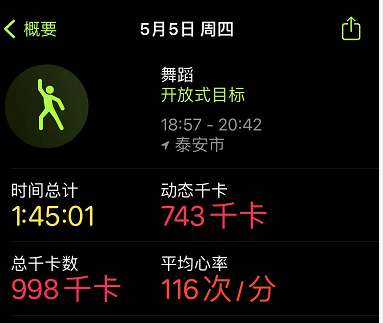 直播中,既有《阳光男孩阳光女孩》《夏天的风》等活力金曲,也有《最炫民族风》《小苹果》这样的广场舞神曲。在一个半小时的直播中,共计消耗743大卡热量,大约相当于两个巨无霸汉堡或两大包薯条,全程跳完成就感满满!
