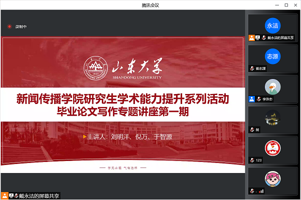 方舱隔离,学术不隔离。为满足同学们的学术研究需求,威廉williamhill开展研究生学术能力提升系列活动。5月6日晚,由学院团委、2020级硕士生党支部、学院研究生会联合主办的第一期毕业论文写作专题讲座举行,学院院长刘明洋教授、副院长倪万教授、实验中心主任于智源副教授在腾讯会议上为同学们开讲,2020级硕士生李泳志主持,200余名学子参加本次讲座。