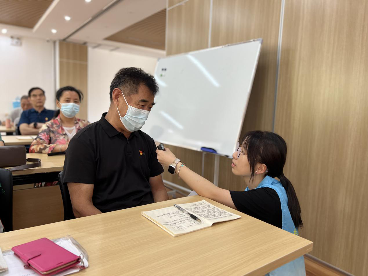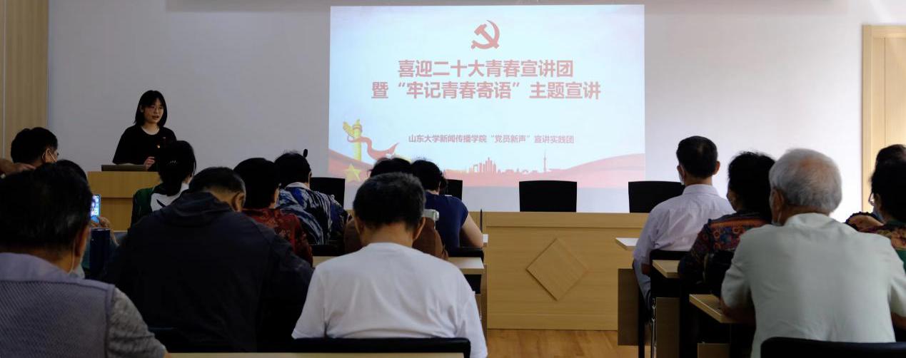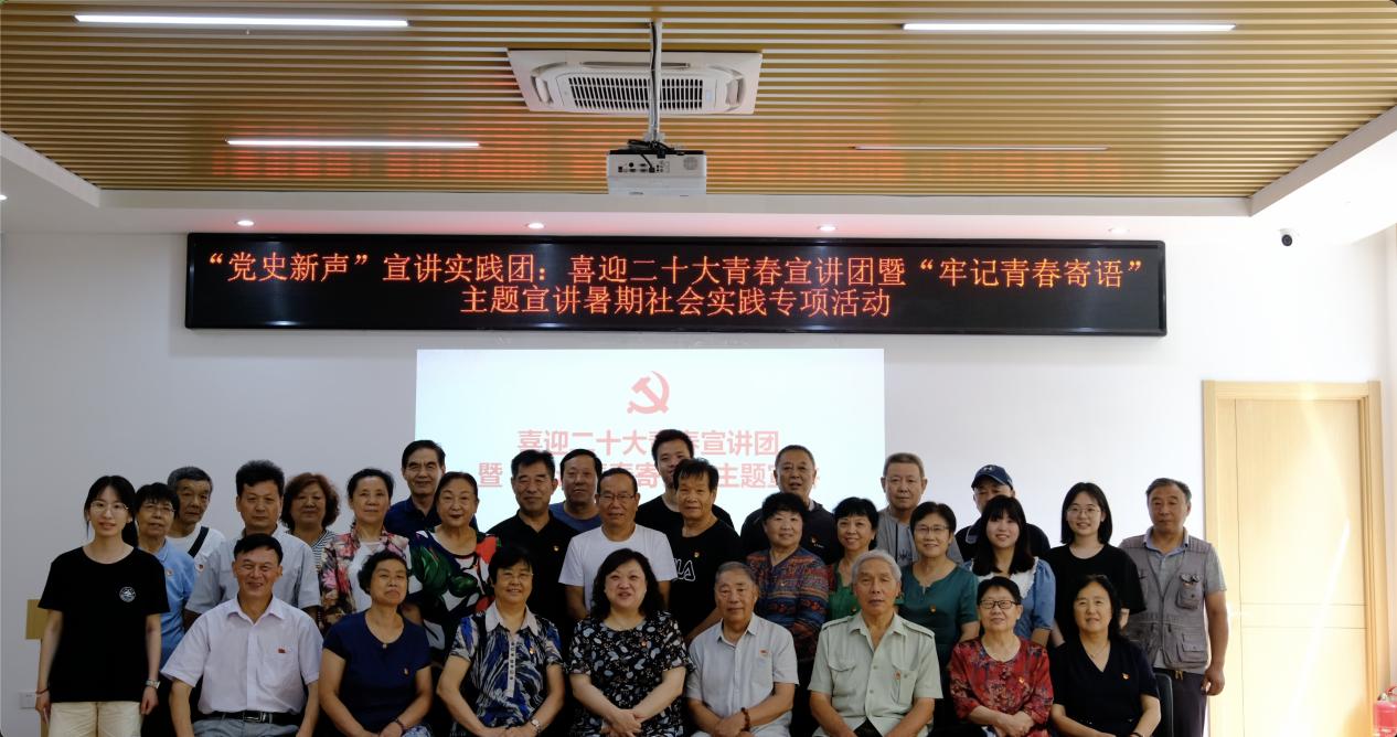 接着,“党史新声”宣讲团成员周傲珺、董雨姝与党员干部们关于中国共产党山东省第十二次代表大会会议精神以及习近平总书记在庆祝中国共产主义青年团成立一百周年大会的讲话精神等前沿思想和精神进行了学习,讨论和交流。党员干部们首先讲述了自己与党的动人故事,表达了对中国共产党的深切情感。然后,党员们对青年党员们提出了殷切的期盼。他们提出,真正的党员需要一生听从党的召唤,将自己献给党的事业;青年党员们应当多走到社会中实践,多为党和人民的事业奉献;对青年党员来说,重要的一点是要发扬革命传统,向革命前辈学习,学习党史精神,积极接受革命教育,成为一个新时代合格的共产党员;不忘初心、牢记使命,牢记习近平总书记的教导,在思想和行动上都向党组织靠拢,再接再厉,为建设社会主义现代化强国而奋斗。最后,党员干部们表示。此次活动增进了两代党员间的距离,很有意义,他们嘱咐“党史新声”宣讲实践团的队员们,一定要把宣讲活动继续办下去,多讲、讲好党的思想、党的理念,把党的精神传递给更多的人。