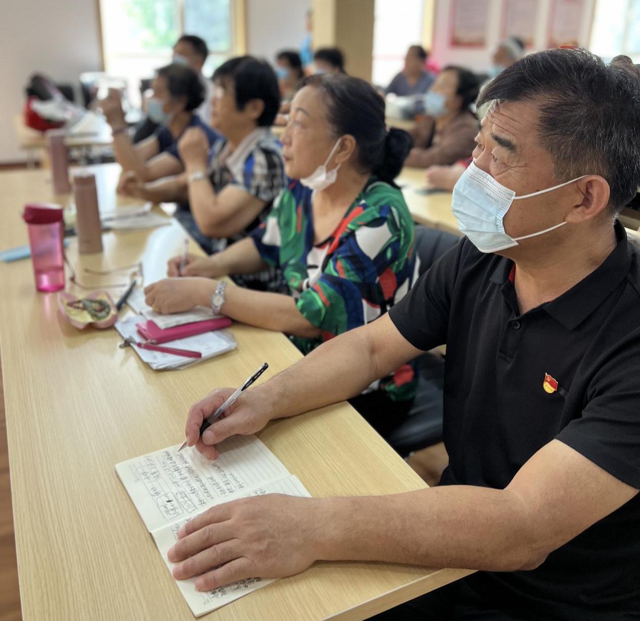上午9:30,“党史新声”宣讲团成员以及花园路第二社区党员干部在党群社区会议室开展喜迎党的二十大青春宣讲团暨“牢记青春寄语”主题宣讲,会议共有27位平均年龄为65岁的党员干部参加。“党史新声”宣讲团队长董雨姝和党员们一起回顾了百余年来党的光辉历程,中国共产党至今已经召开了十九次党的全国代表大会,每一次党代会,都是党的发展进程中的重要里程碑。通过对党史的学习和回顾,加强党员思想建设,从而更好地发扬革命传统,传承红色基因,在实现中华民族伟大复兴中国梦的进程中开拓进取、不断拼搏。