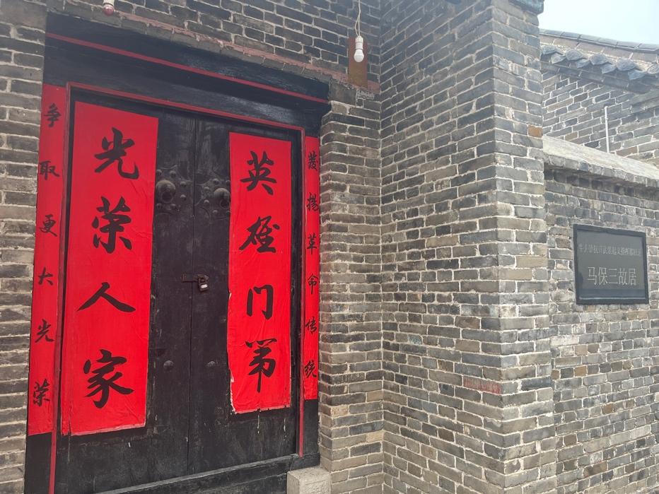本次实践调研的第二站是马保三故居。在革命战争时期,寿光涌现出了一大批革命英雄人物,马保三就是其中之一。马保三于1924年8月加入中国共产党,成为了中共寿光地方党组织建立后发展的第一批党员,建立牛头镇第一个党支部,并担任支部书记,开展抗日活动。解放战争期间被编入东北野战军,解放后长期在山东省工作。在长达40年的革命生涯中,他“一贯忠于党的事业,勇于坚持原则,在对敌斗争中顽强不屈,为党和人民的事业贡献了毕生精力。”这是中共山东省委对他所作的评价,也是马保三革命生涯的真实写照。马保三故居始建于二十世纪三十年代初,由马保三先生亲自设计督建,深朱红色的大门上贴着“光荣人家,英雄门第”“争取更大光荣,弘扬革命传统”的红色字幅。队员们怀着无比崇敬的心情探访了位于马保三同志的故居,追忆了马保三先生的八支队将士征战齐鲁、英勇抗战的光辉历史,真切地感悟到了革命先辈“鞠躬尽瘁,死而后已”的革命意志和淡泊名利的崇高品德。