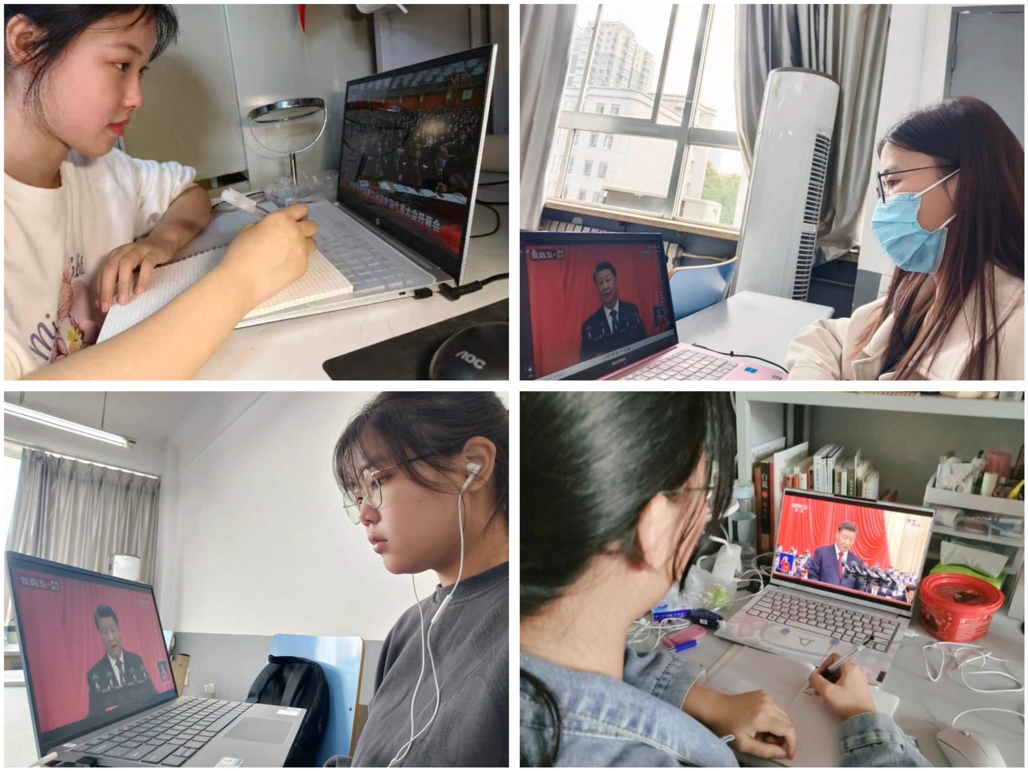 学院青年学生骨干通过线上线下相结合的形式认真收听收看开幕会并集中开展专题学习,通过收看党的二十大现场直播,同学们增强了对伟大祖国、中国共产党、中国特色社会主义的政治认同、思想认同、心理认同,大家一致表示,要坚定不移听党话,跟党走,做有理想、敢担当、能吃苦、肯奋斗的新时代青年。