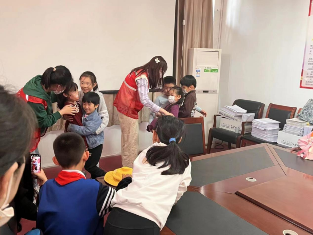 在本次活动中,志愿者陈珺首先通过讲解授课的方式向小记者们介绍了长臂猿的基本情况,加深了小记者们对长臂猿的认识,帮助他们树立保护长臂猿和自然环境的意识。随后,志愿者张静文、曾蓉、闫舒、赵雨鑫、刘笑芸向小记者们表演了自创手偶剧《小狮子的口罩》。该手偶剧通过讲述小象和小猴子因为共用小狮子丢弃的口罩而被传染感冒这一故事,向他们传达了在新冠疫情防控常态化背景下出入公共场合佩戴口罩的重要性,并且提醒其不要乱扔口罩,在保障自身健康,做好防护的同时保护环境。最后,志愿者邹谢依娜和李蔁宇带领小记者们进行了“空间挤压”的生态小游戏。每组小记者们共同站在一张报纸上,报纸不断对折,可站立空间也被压缩。通过这个游戏,小记者们在参与、合作、挑战的同时也意识到由于人类活动导致的动物生存空间减少给动物带来的巨大威胁,认识到环境保护对于动物生存发展的重要作用,树立了生态保护的意识。