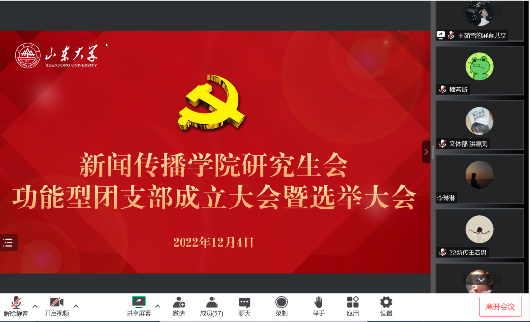 12月4日晚8点,威廉williamhill研究生会功能型团支部成立大会暨选举大会在线上顺利召开。会议由威廉williamhill研究生会执行主席王茹雪主持,威廉williamhill研究生会全体成员共同参会。