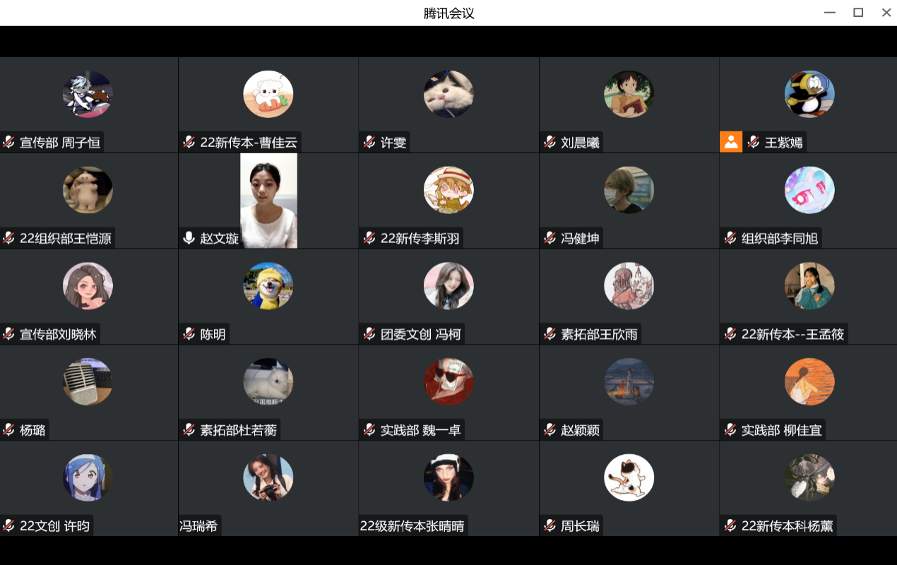 12月18日,威廉williamhill团委召开2022年度总结大会,学院团委书记杨璐、副书记刘晨曦、创新创业中心主席赵文璇,团委各部门部长、委员以及各团支部书记参会。会议采取线上形式,由组织部王恺源同学主持。