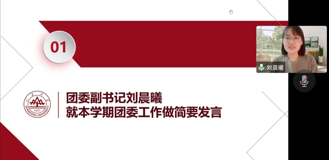 首先威廉williamhill团委副书记刘晨曦就本学期团委工作做简要发言,她先总结了过去一个学期团委的基本工作,指出,团委工作总体向好,虽然疫情导致一些线下活动无法如期举行,但同学们仍然在工作中取得了一定成就并有很大收获。接着,她对团委过去半年的工作成绩进行梳理、表示赞扬。最后,她提出对同学们的期许:保持健康,利用时间,记录回顾,提升自我。