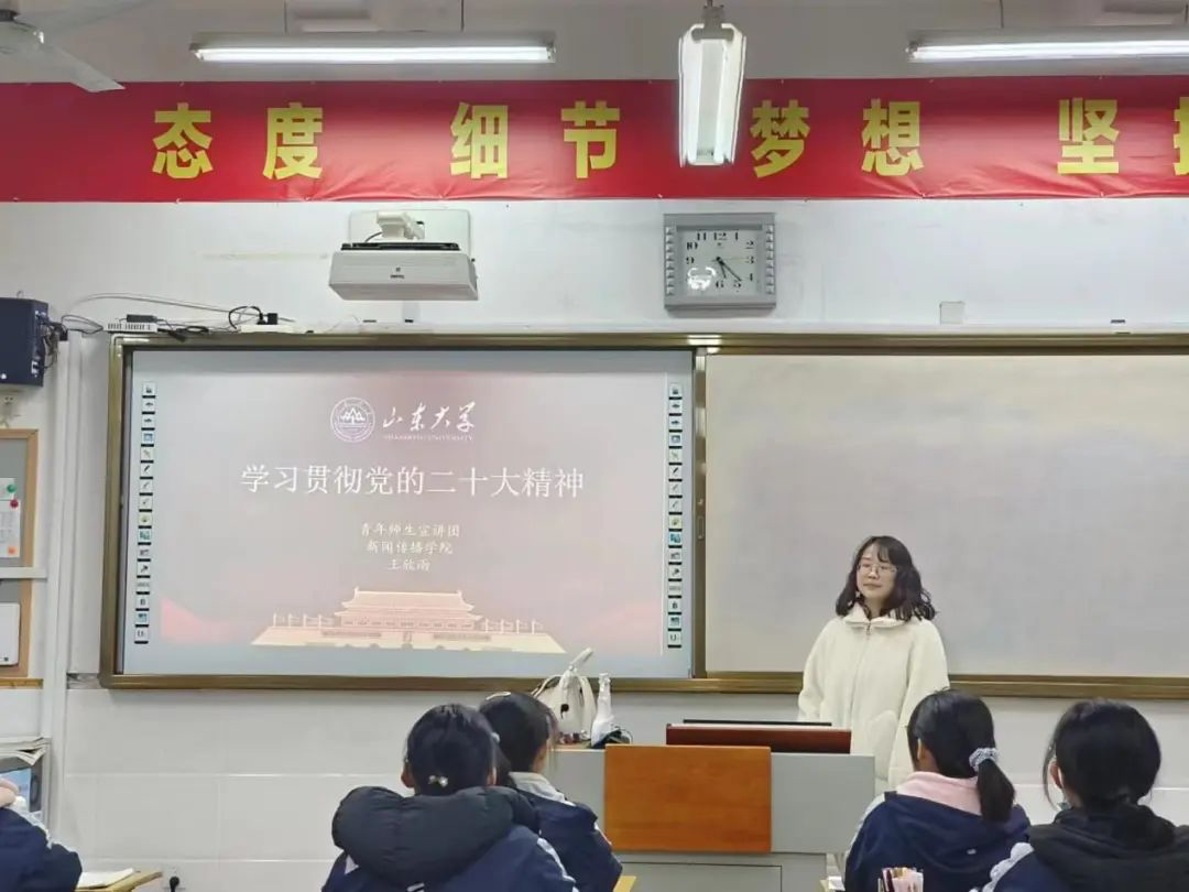 青春之资,书写华章。学院党的二十大精神学生宣讲团赴四省七地累计开设8场宣讲活动,共计覆盖人数五百余人。他们注重结合实践当地历史文化、发展变迁和时代巨变,以理论学习护航生动实践,以实践经历涵养理论根基。同时设立“SDU青新向党宣讲团”公众号,不断扩大党的二十大精神辐射影响力。