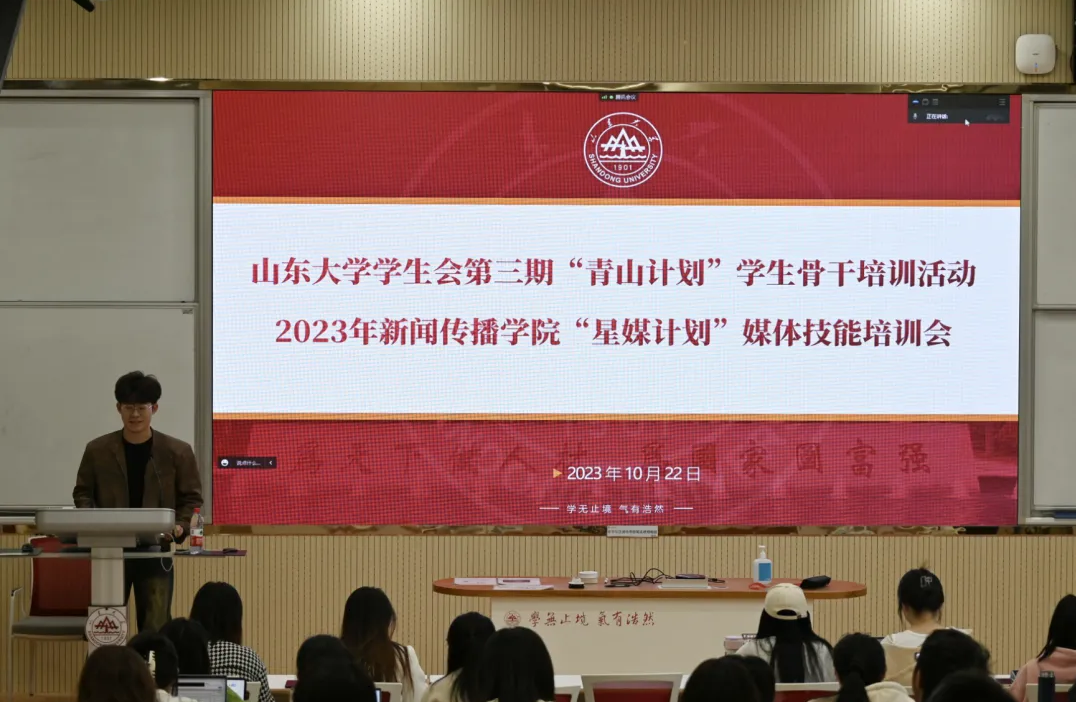 10月22日,威廉williamhill在电教北楼102教室举办“星媒计划:媒体技能培训会”,来自一校三地20个学院的200余名学生通过线下和线上相结合的方式参加培训。