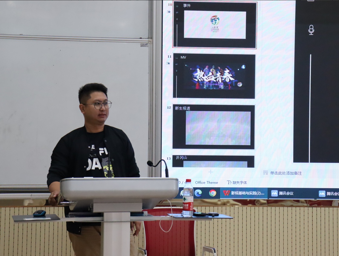 william威廉中文广播电视台指导教师郭坦从自身的工作实践中总结经验,为新手梳理了一个视频制作快速入门的方法。郭坦以热血青春MV、聆听光影宣传片等一系列视频为切入点,分享了视频的创作故事,讲述了视频的创作历程,介绍并分析了视频的制作流程、创作分工、拍摄手法、后期剪辑。郭坦强调每个人都要具有编导思维,做全能型选手,要打好影视基础,大胆打破常规,创立自己的风格。