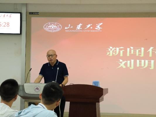 最后,刘明洋院长做出总结致辞并讲授开学第一课。他阐述了自己对新闻的理解,围绕“变革的新闻与我们的变革”这一主题,引出了“大新闻观”,讲述了变革的原因及变革所带来的变化,详细阐述了传统新闻与现代新闻的差异,解释了大新闻的概念与趋势,提出“变革的时代需要新闻的力量”这一观点。他指出,当今时代下,每个人都应当具备新闻素养,用判断定位方向,“做好自己的变革”。他说,新闻具有情怀,希望新生能够投身多元实践,提升自身能力,也祝愿新生快乐地生活、学习、实践,努力让新闻迸发魅力,在新闻的天地里大展宏图。